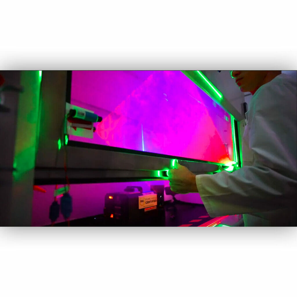 Traditional methods of assessing fume hood performance often fall short in illustrating complex airflow behaviors. The Tri-Color Fume Hood Visualizer addresses this gap by utilizing vapor haze and laser technology to render airflow patterns visible. This real-time visualization allows users to observe and analyze the dynamics within and around the fume hood, leading to a deeper understanding of its operational efficiency.