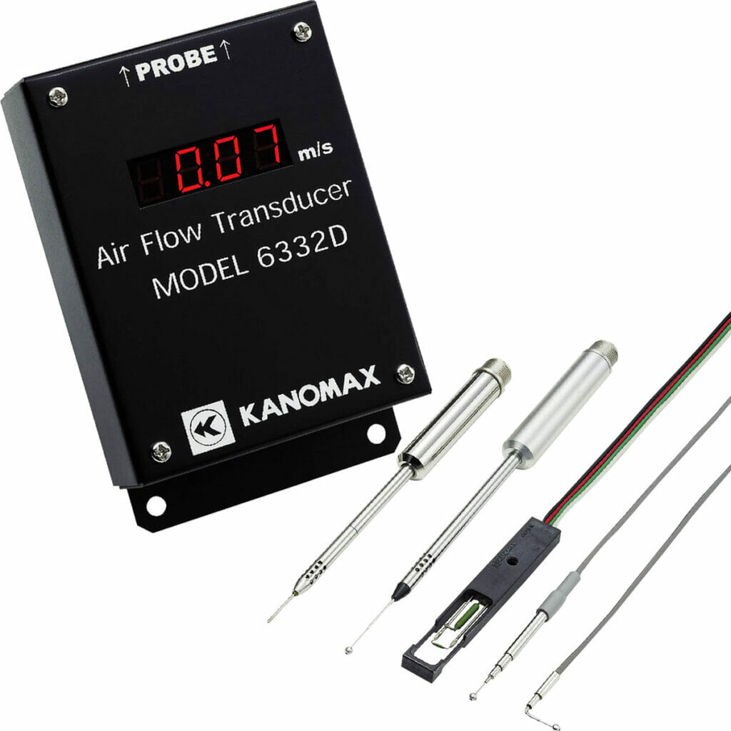 The Kanomax Airflow Transducer – Models 6332/6332D comes equipped with analog output and smart probe technology, making it easy to integrate with other equipment. Smart probe technology lets you change probes without recalibrating the transducer. Multiple probe options are available separately, allowing you to choose the ones that meet your application needs. This instrument is ideal for applications involving the need to measure or monitor air velocity over a long duration. Model 6332D comes with a display, while Model 6332 does not have a display.